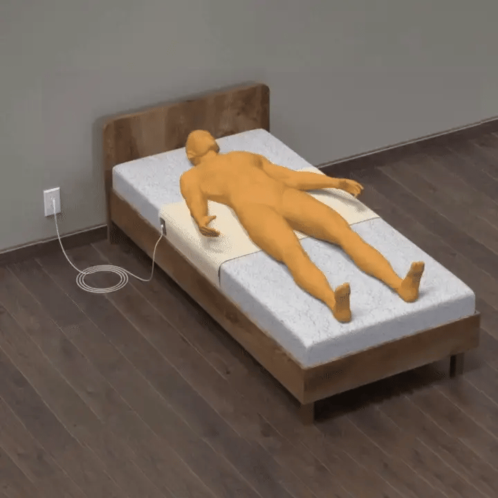 Place it under your fitted sheet on the mattress. It should lie flat where your body will rest, ensuring direct skin contact or thin-layer contact for optimal conductivity.